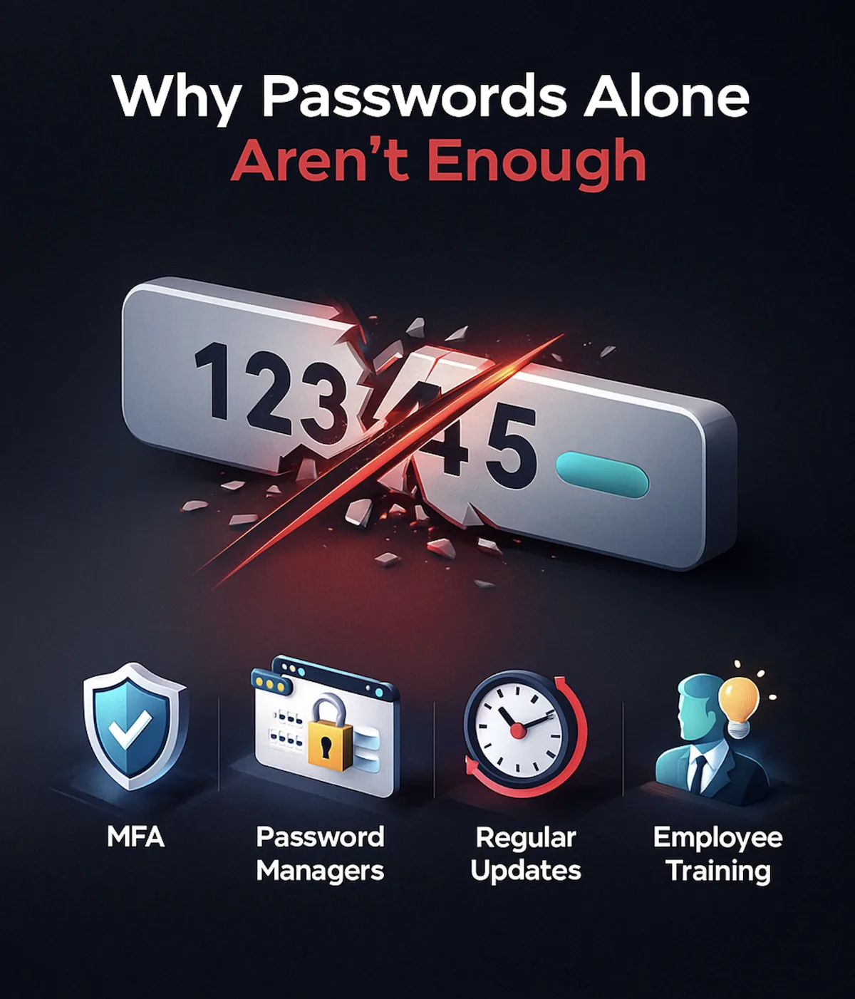 Cybercriminals use advanced tools that can crack even complex passwords in minutes. Worse, many breaches today don’t involve guessing at all—they involve stealing credentials through phishing or dark-web leaks.